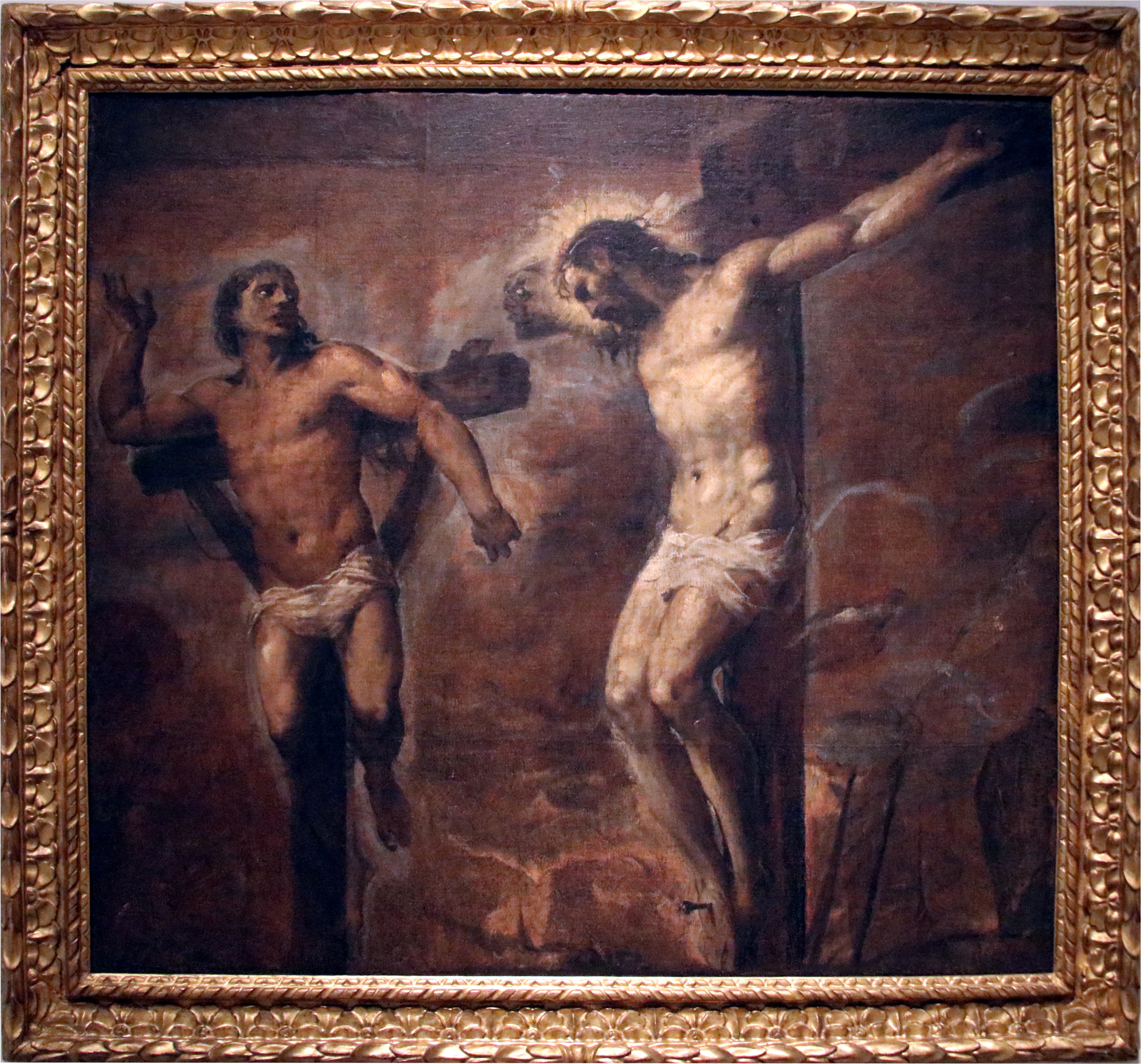 Jesus, for his own part, does not choose to respond to this criminal’s mockery. Instead, the other criminal, whom tradition identifies as Saint Dismas, rebukes the first criminal. He comes to the point when he says that: