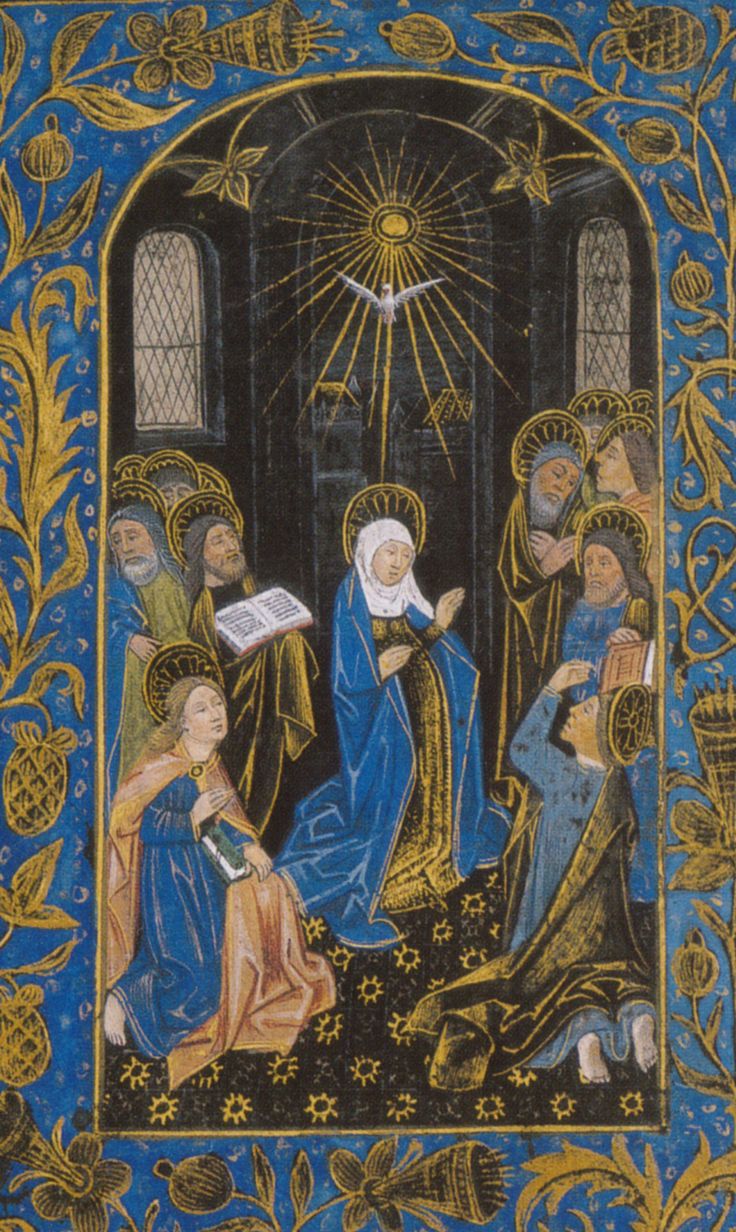 At the Annunciation of the Good News, God became man: Christ’s Body began forming within Mary’s womb. Here in the upper room at Pentecost, that same Holy Spirit descends again, to overshadow the apostles. Here in the upper room, Christ had offered the first celebration of the Sacrifice of the Eucharist. There the Church—the Body of Christ—was born, that the apostles might go forth into the world to preach the Gospel and offer their lives in sacrifice for Christ.